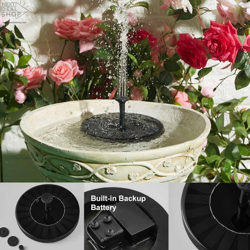 Descrição: Crie uma atmosfera encantadora no seu jardim com este kit! Com bateria de reserva embutida, você pode finalmente ter sua fonte durável por quase 1 hora depois de ter sido exposta ao sol. Faça a sua fonte disparar água mesmo quando o sol é bloqueado pelas nuvens! A bateria interna proporcionará eletricidade temporária, por um tempo, antes de precisar carregar novamente!